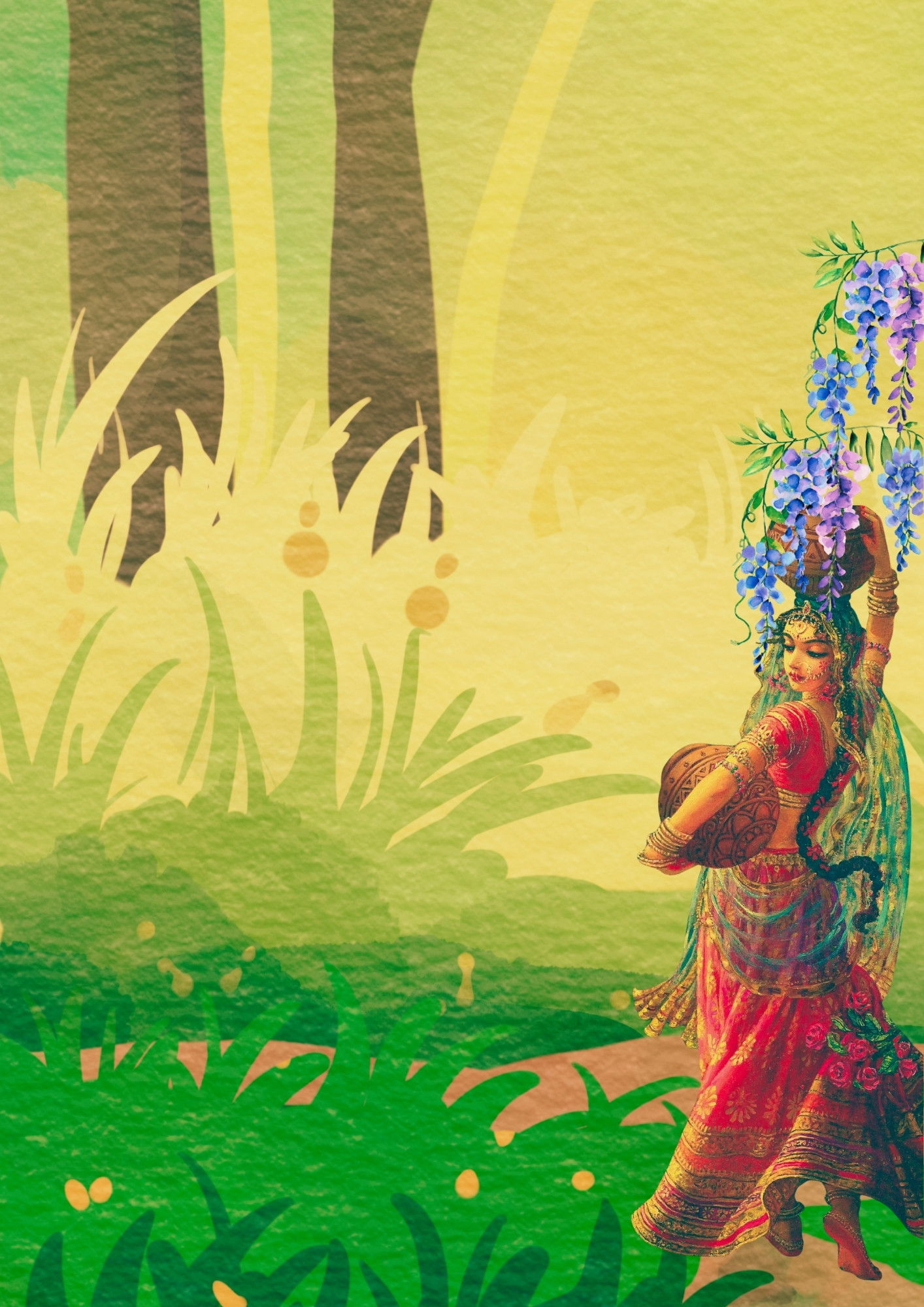 please come to Vrajabhūmi. That Vṛndāvana is still there, where You played during Your kaiśora-līlā. The jungle is there. The kuñjas are there. The peacocks are there, and the Yamunā River is there. Giri Govardhana is there. Everything is there. Everyone has been waiting for You. That Vṛndāvana is so beautiful! Vṛndāvana’s beauty is anupamā (incomparable). Please come there. We are going. Let vraja-līlā again be manifested. Let all of us surround You with Your tribhaṅga-lalita (charming three-curved rūpa), as You stand playing Your flute so sweetly.’ ”