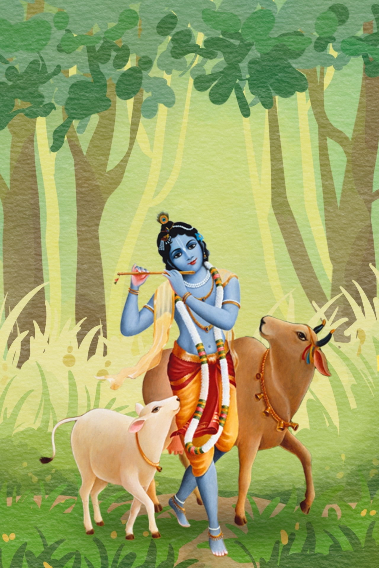 and their wives, the creepers and their children, the leaves and flowers, all welcome Him as all family members welcome a sādhu. Even the birds and peacocks become stunned and forget to speak. They close their eyes like munis, sit in the trees, and reverse their nature.”